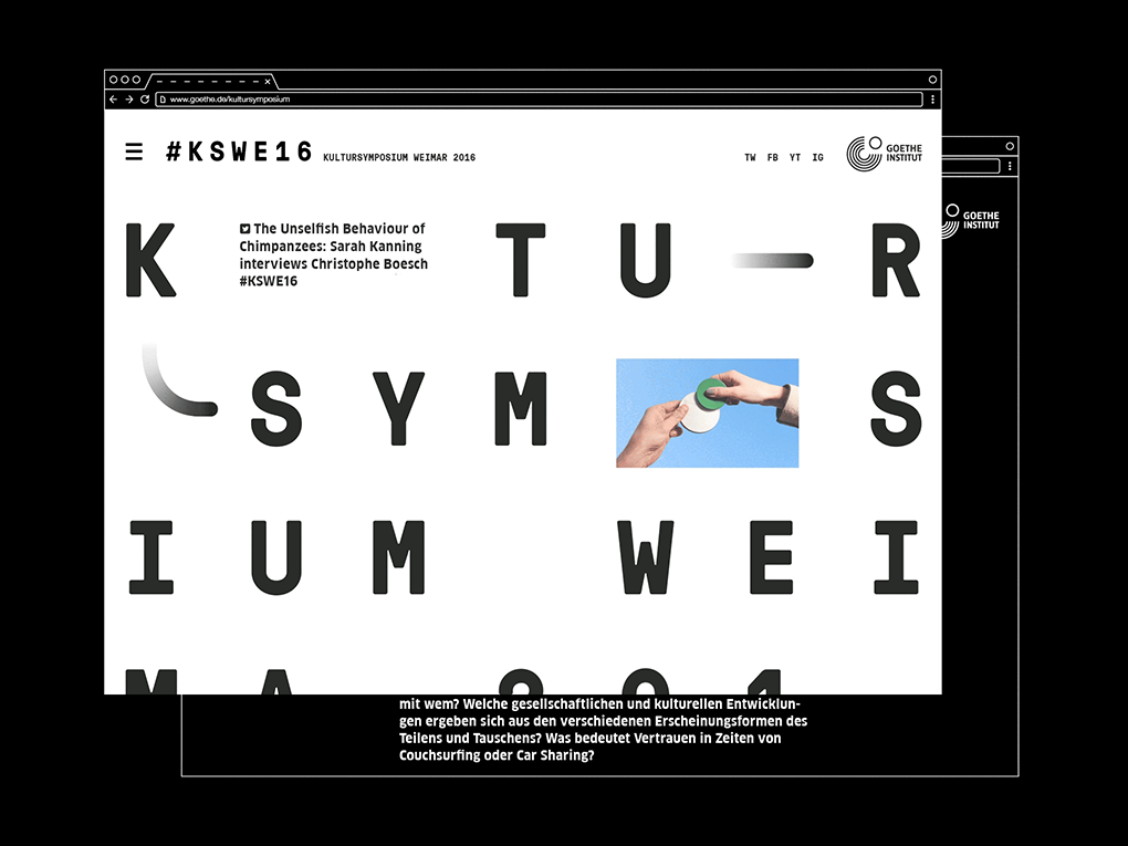 Drei Tage, 75 Einzelveranstaltungen, 15 Spielstätten: Für das Kultursymposium Weimar 2016 des Goethe-Instituts entstand eine Website, die das komplexe Programm übersichtlich und interaktiv erfahrbar macht.